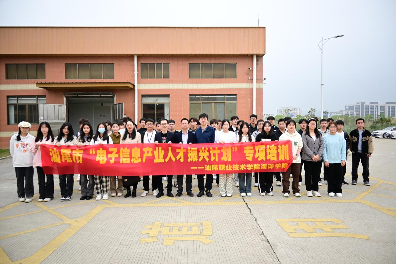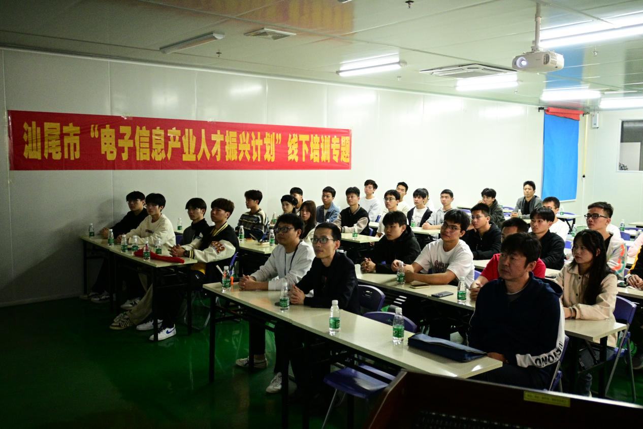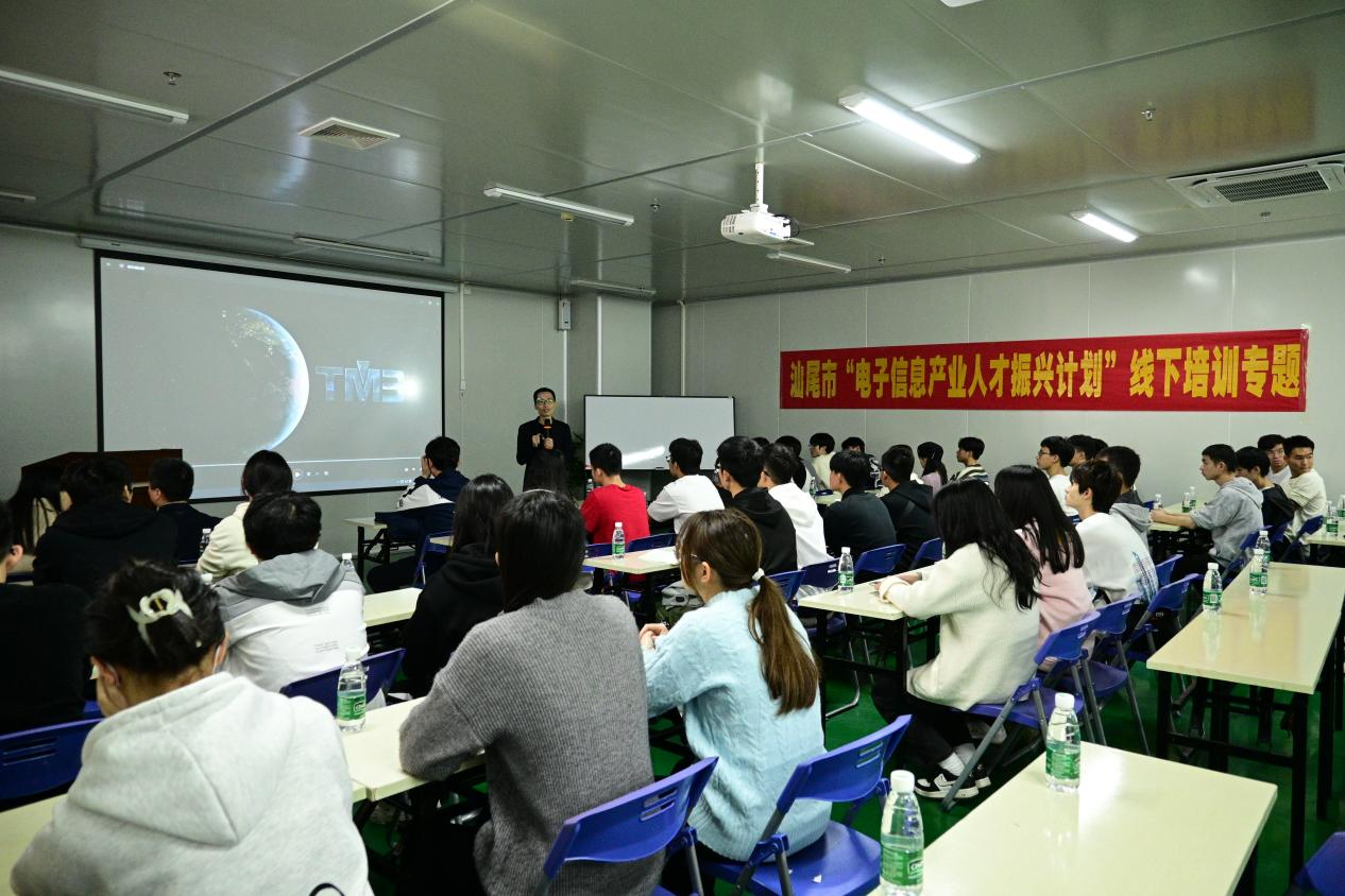 为深入实施人才振兴战略,提升我市电子信息产业吸引力,让从业人员知岗爱岗,SUNBET申博于2024年3月16日组织一场专题培训活动。本次培训活动在汕尾天贸新能源科技有限公司举行,45位意愿在我市电子信息产业行业就业青年参加本次培训,SUNBET申博智能制造5位专家一同前往天贸新能源交流。