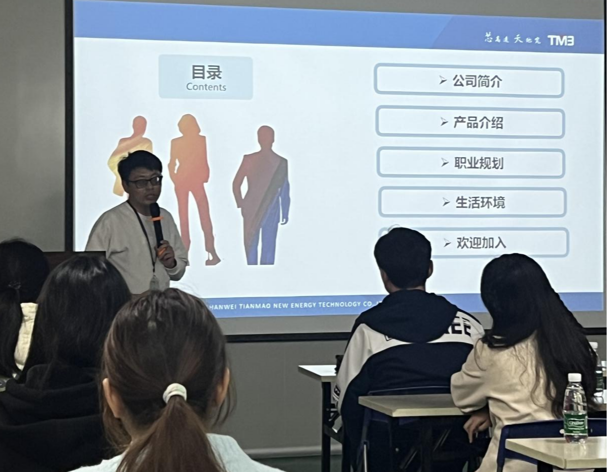 紧接着,培训的第二项,由企业相关高管及高级工程师介绍了企业文化和工艺技能。天贸的江经理详细介绍了产品特性、职业规划以及公司生活环境等方面的情况,帮助大家对公司有了更加全面和深入的了解。公司的杨工程师为大家详细讲解了锂离子电池生产工艺流程与关键参数管控,让大家对新能源电池的生产过程有了更为深入的了解。