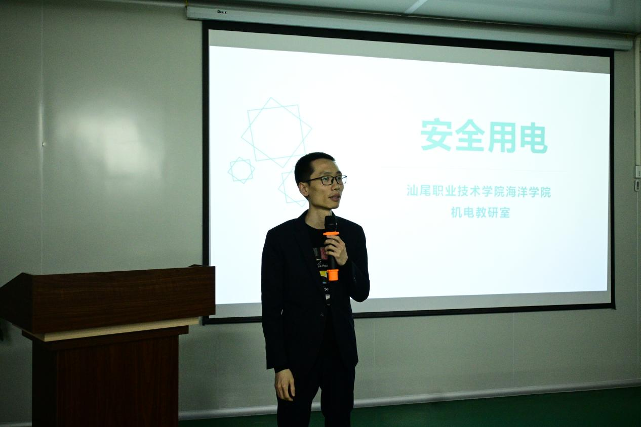 第三项,由公司苗鹏老师通过生动的案例和深入浅出的讲解普及了安全生产知识,包括电的危害、配电及触电形式、安全标识及隐患分析等内容,使参训者们对用电安全有了更加清晰的认识,从而提高了安全意识和自我保护能力。