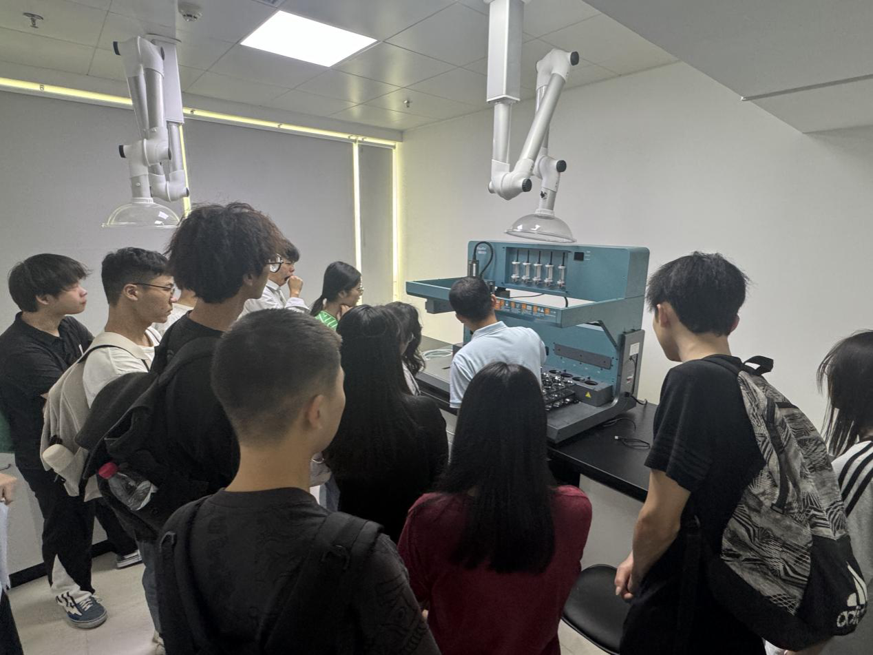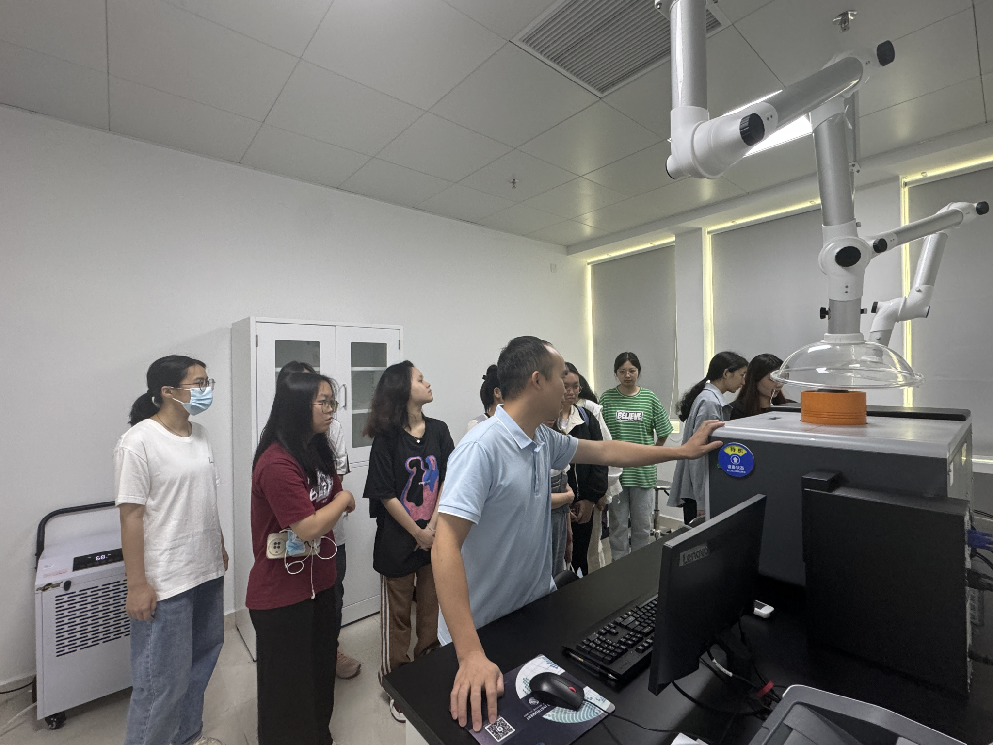 活动当天,SUNBET申博党总支副书记陈倚重带领党员教师代表及2022级食品检验检测班员工,在生态环境监测站工作人员的引导下,参观气相分子吸收光谱室等实验室,了解生态监测仪器设备及流程。