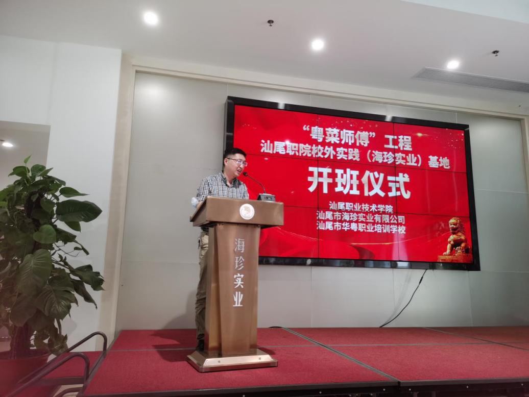 5月6日,公司举行“粤菜师傅”工程项目烹饪专业校外实践(海珍实业)基地开班仪式,仪式在高新区海珍实业科教中心举行,市餐饮行业协会会长、海珍实业总经理吴惠芳女士、华粤职校林旭兵董事长、SUNBET申博陈昌文经理、公司教务处刘恩祥副处长、SUNBET申博、海珍实业及华粤职校相关人员、2021级烹饪工艺与营养专业员工共40多人参加了仪式。