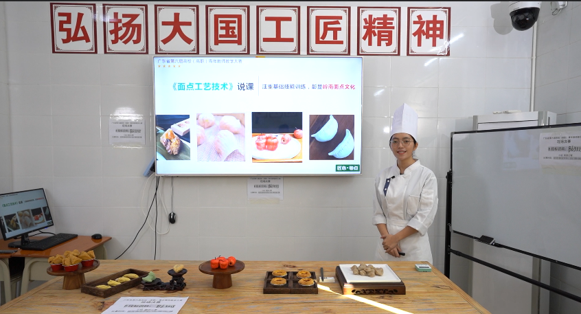 在本次大赛中,罗静蓉老师以岭南地方风味点心文化为主线,构建“1+4”模块,展现“一点一文化,巧手亮绝活”的教学绝活,充分展示了公司青年教师良好的教学素养和过硬的教学能力。