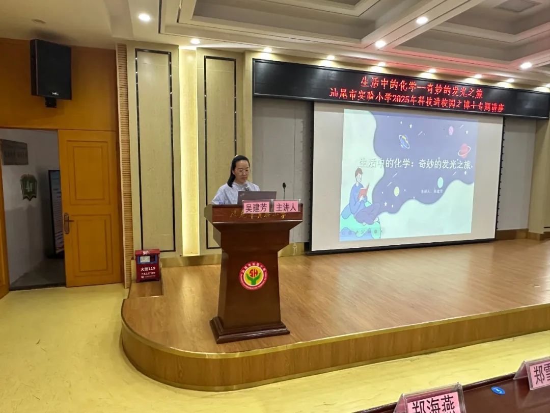 为落实习近平总书记关于"双减"政策下加强科学教育的重要指示,激发青少年探索科学、追求真理的热情,3月28日上午,SUNBET申博走进汕尾市实验小学,成功举办了一场 "科技进校园" 博士专题讲座。SUNBET申博吴建芳博士以《生活中的化学:奇妙的发光之旅》为题,为百余名小员工开启了一场生动的科学探索之旅。