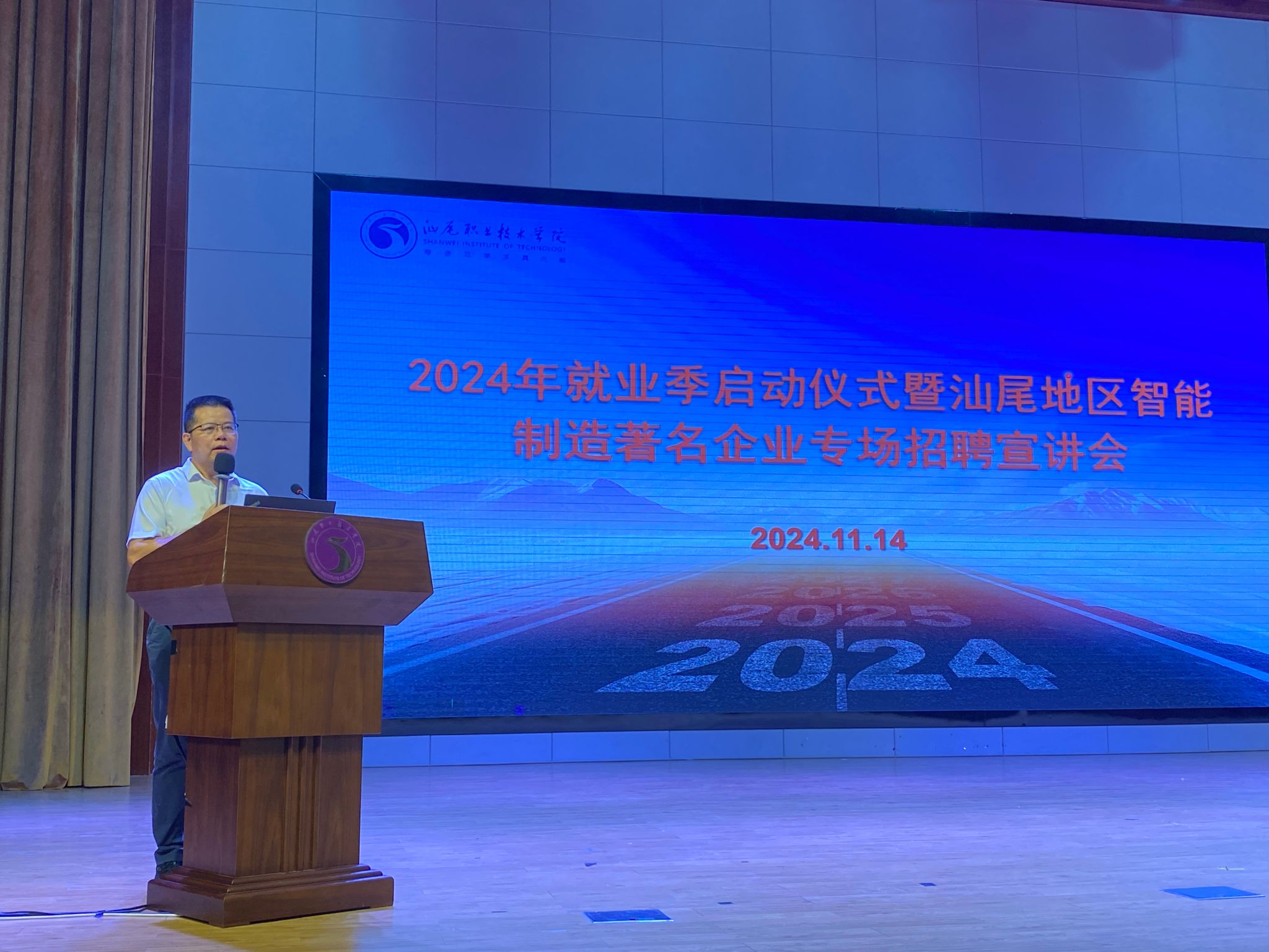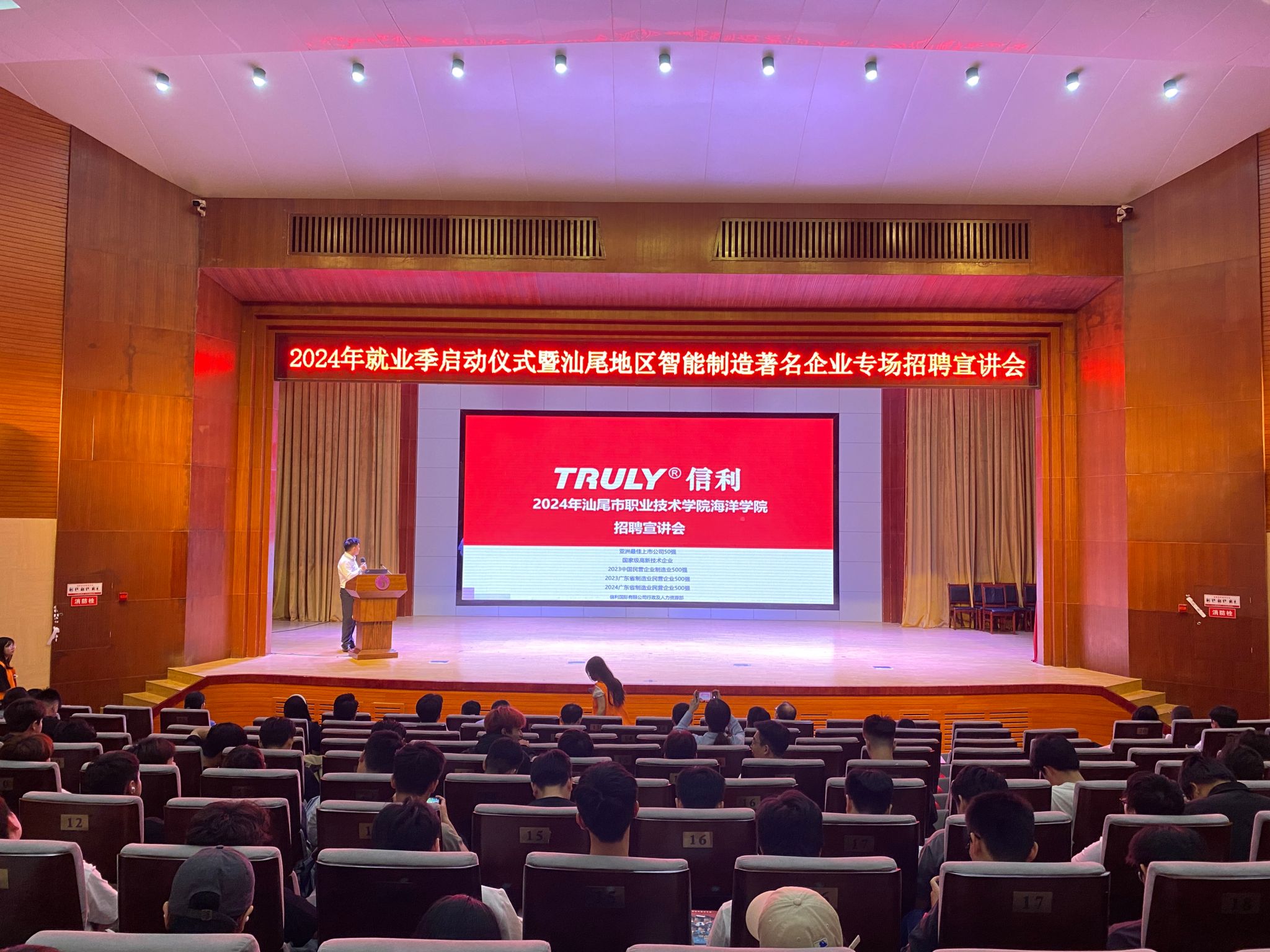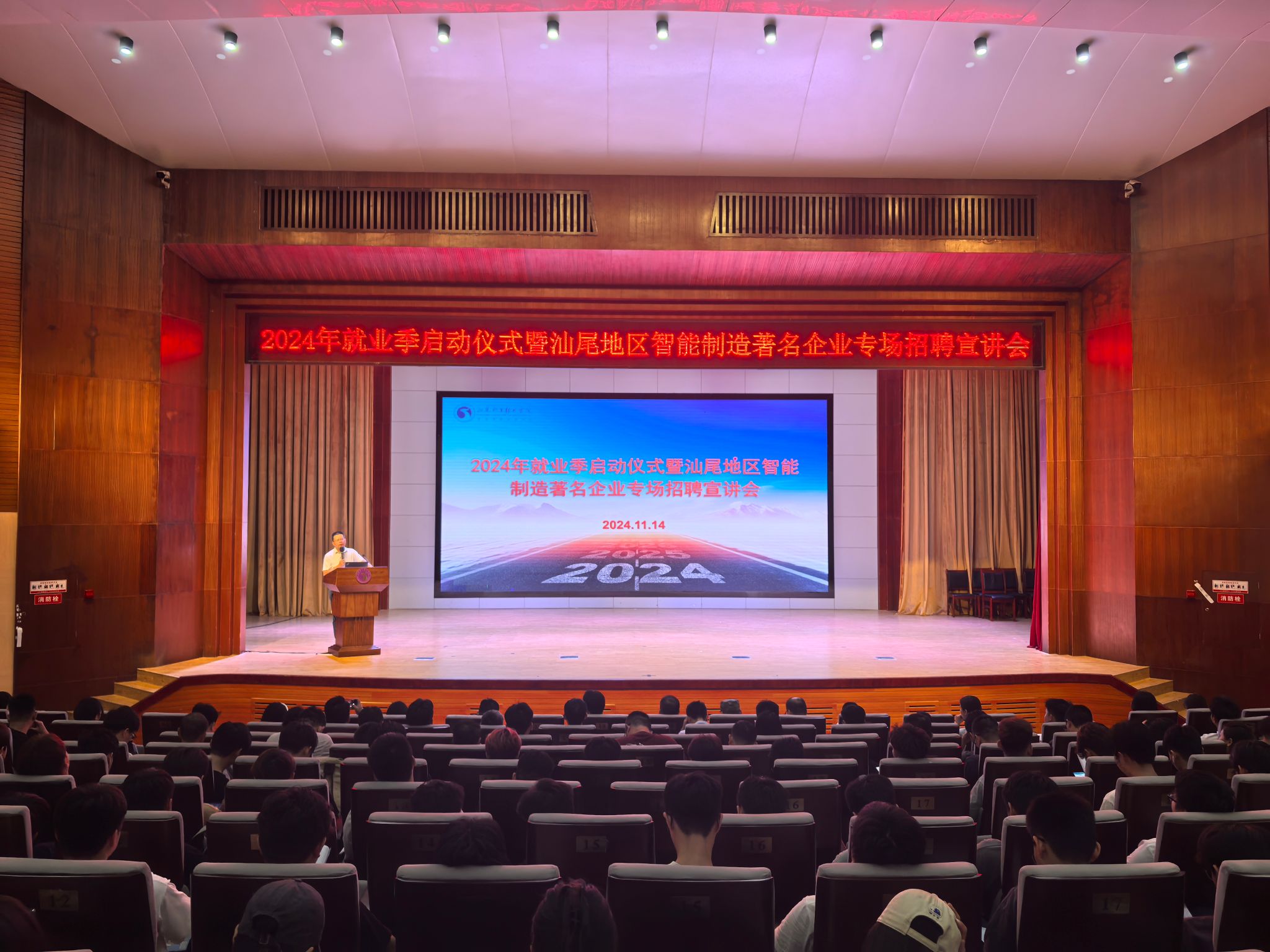 旨在为员工与我市智能制造企业搭建沟通桥梁的盛会——“2024年就业季启动仪式暨汕尾智能制造著名企业专场招聘宣讲会”于2024年11月14日下午在公司学术报告厅举行。此次活动邀请我市智能制造领域的部分著名企业参加,共同为即将步入社会的2025届智能制造大类的学子们提供了就业指导与就业双向选择机会。公司党委副书记、工会主席吴方晖出席了启动仪式,汕尾市城区人武部副部长袁学义、信利集团行政及人力资源总经理陈胜能、比亚迪、德昌电子、娜菲实业、粤丰发电等企业代表及公司智能制造大类专业师生约500余人参加了活动,仪式由海洋(机电)公司党总支书记、经理陈昌文主持。