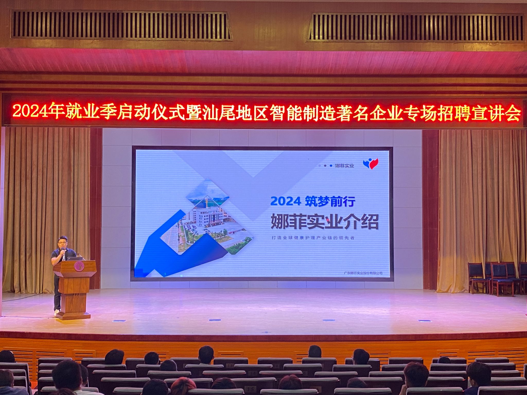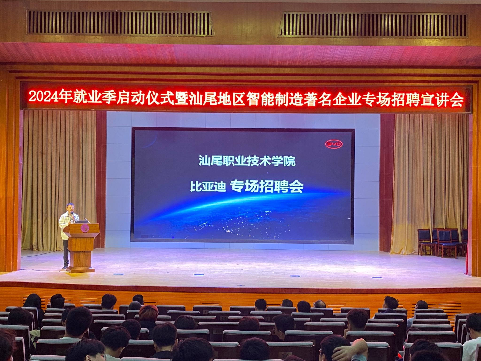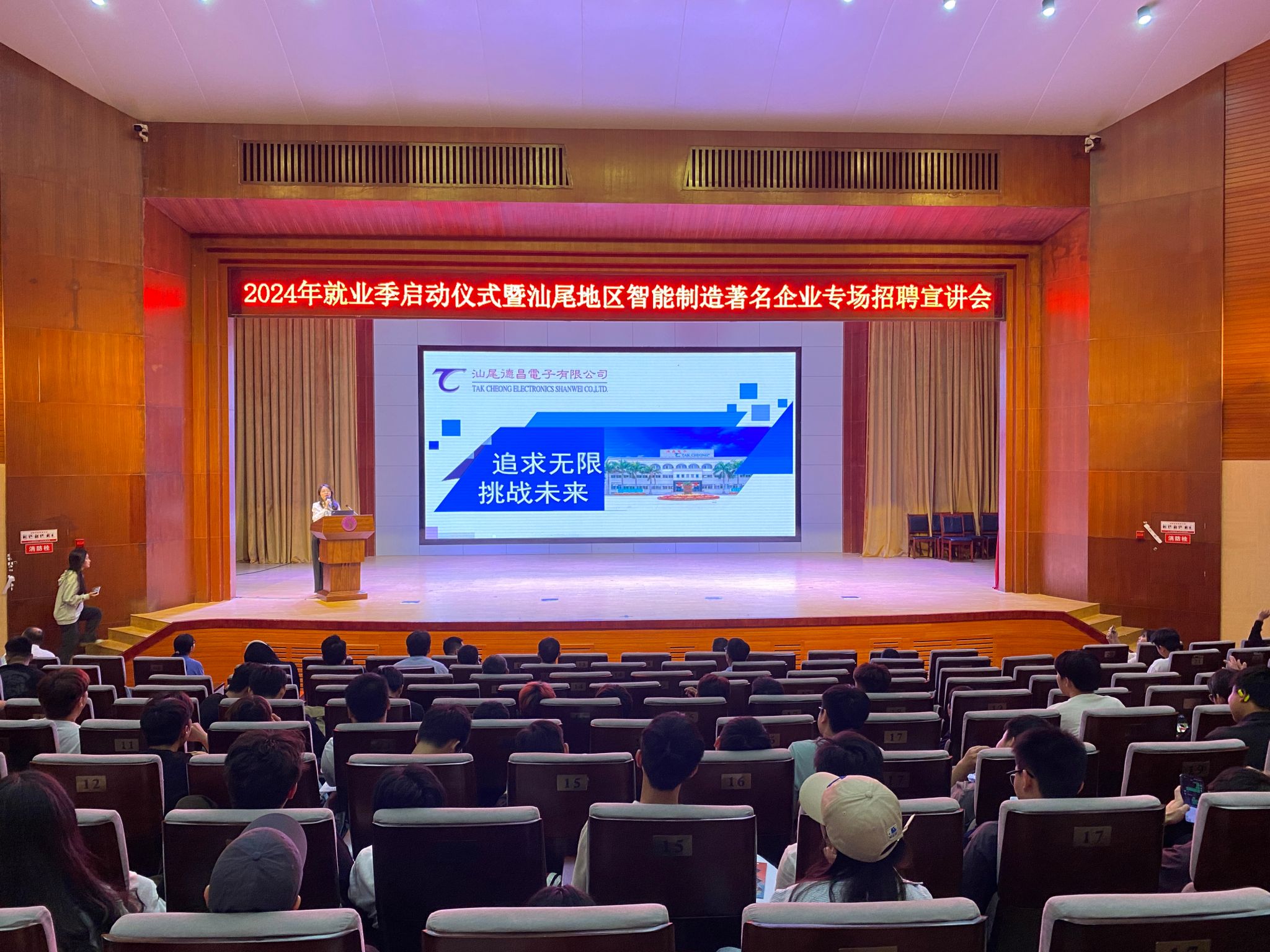 旨在为员工与我市智能制造企业搭建沟通桥梁的盛会——“2024年就业季启动仪式暨汕尾智能制造著名企业专场招聘宣讲会”于2024年11月14日下午在公司学术报告厅举行。此次活动邀请我市智能制造领域的部分著名企业参加,共同为即将步入社会的2025届智能制造大类的学子们提供了就业指导与就业双向选择机会。公司党委副书记、工会主席吴方晖出席了启动仪式,汕尾市城区人武部副部长袁学义、信利集团行政及人力资源总经理陈胜能、比亚迪、德昌电子、娜菲实业、粤丰发电等企业代表及公司智能制造大类专业师生约500余人参加了活动,仪式由海洋(机电)公司党总支书记、经理陈昌文主持。