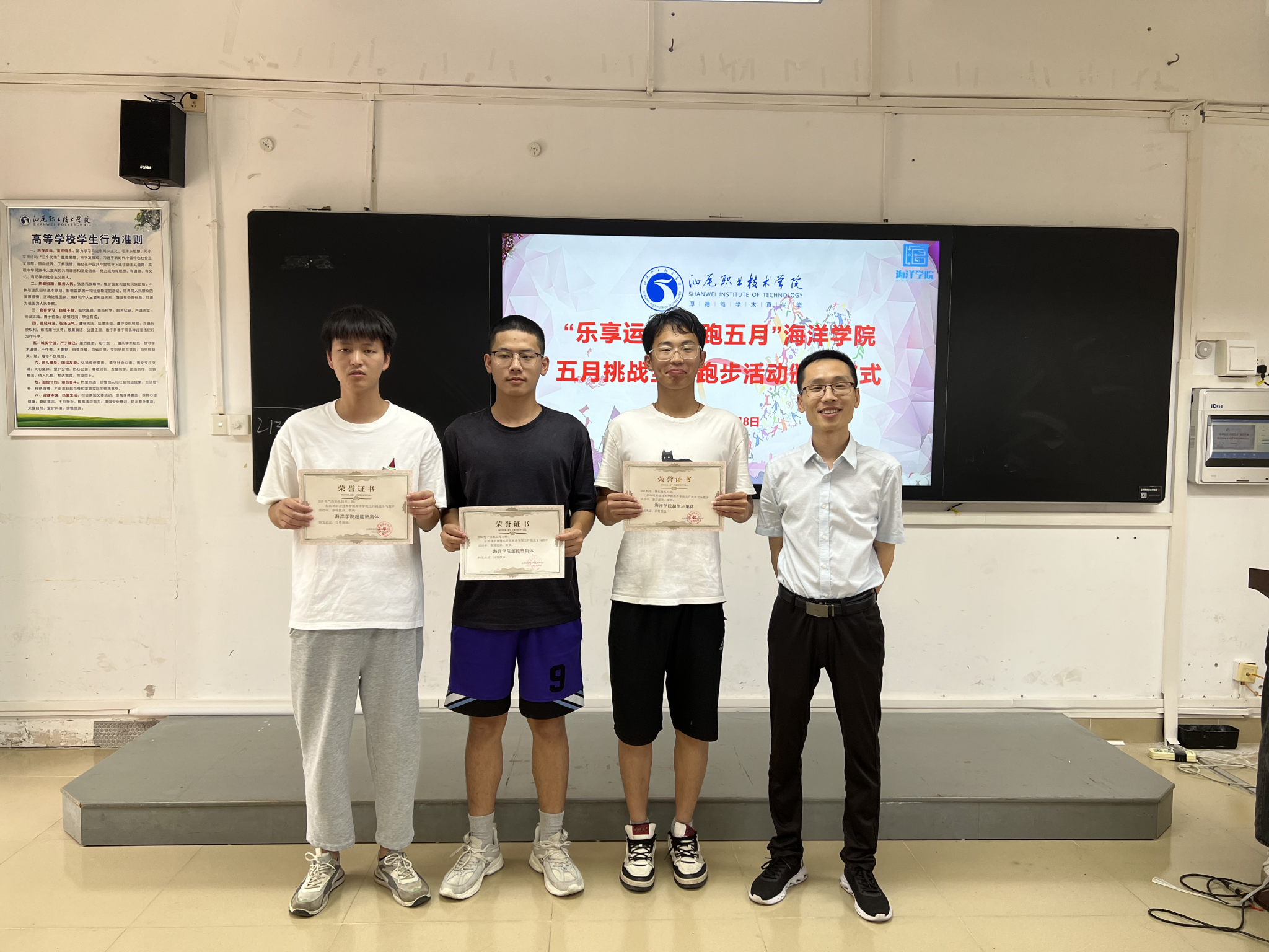 接下来由陈倚重副经理为获得“SUNBET申博超能班集体”的班级颁奖。其中223机电一体化技术1班总公里数第一,213电气自动化技术1班总公里数第二,223电子信息工程技术2班总公里数第三。