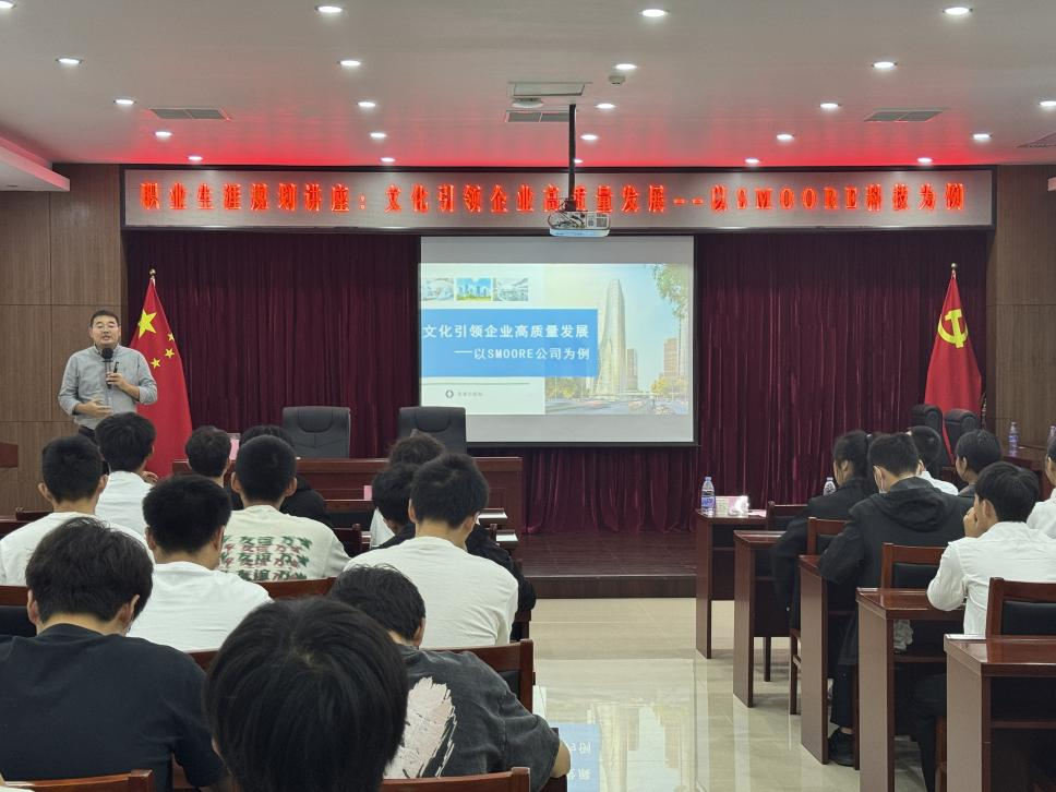 为促进公司员工更明晰职业目标,做好职业生涯规划,11月23日下午,公司邀请SMOORE集团人力资源高级总监康磊为公司员工作了题为《文化引领企业高质量发展——以SMOORE公司为例》的职业生涯规划讲座。SUNBET申博师生80余人参加了讲座。