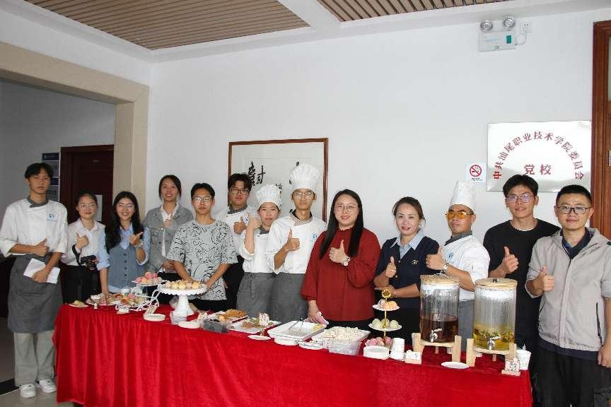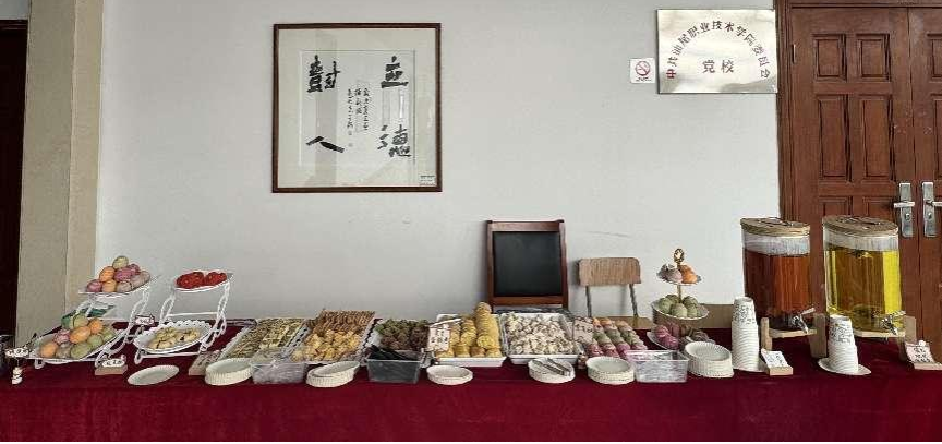 11月23日,SUNBET申博第三届科技文化节开幕式在科学楼四楼会议室举行。烹饪专业师生为此次开幕式准备了“点点心意”美食体验活动。
