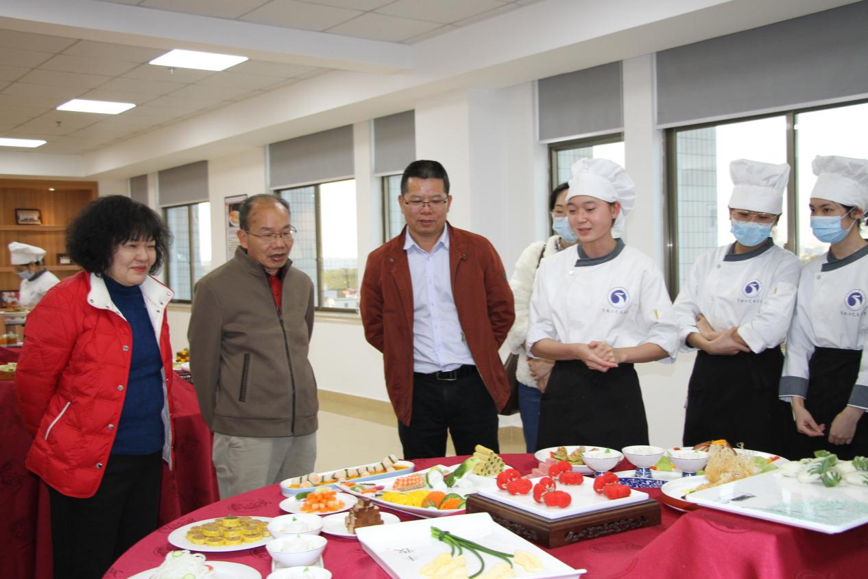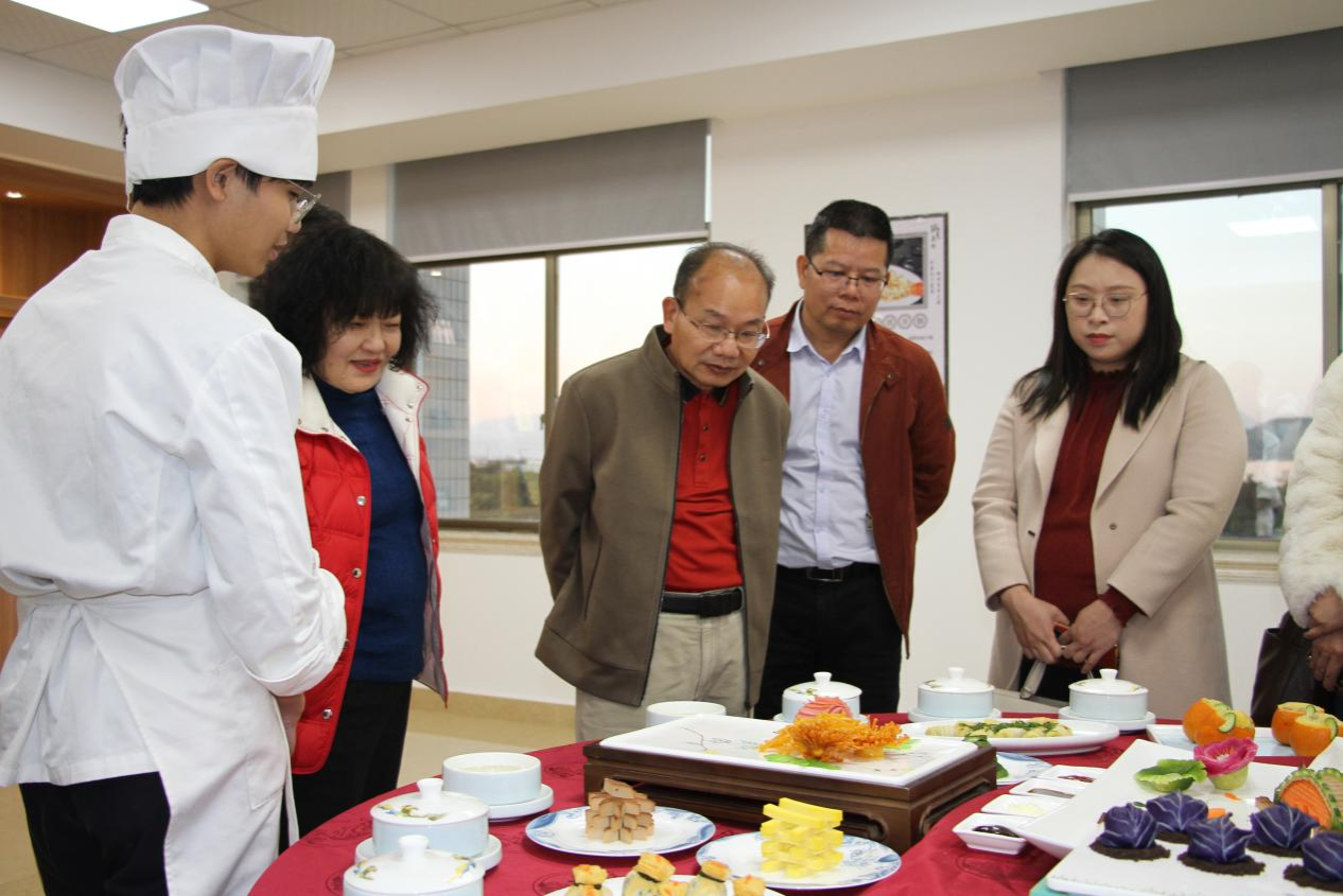 1月3日,公司烹饪工艺与营养专业2021级毕业设计活动在海珍实业有限公司华粤职业培训公司隆重举办。本次设计展以“弘扬工匠精神、启航精彩人生”为主题,以员工团队合作宴席设计为主线,以员工自主创新为基础,展现了公司烹饪专业毕业生的专业素养和精神风貌。公司原副董事长傅凤龙副董事长、SUNBET申博陈昌文经理、陈敏敏副经理、烹饪及食检教研室相关教师、海珍实业有限公司吴惠芳总经理及相关领导出席了此次活动。