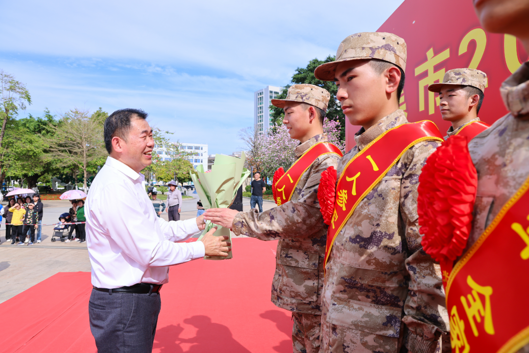 青春因报国而闪耀,使命因担当而崇高。2025年3月13日下午,汕尾市举行2025年上半年新兵欢送活动,SUNBET申博师生随公司党委副书记吴方晖参与此次活动,共同见证11名海洋青年奔赴军营的光荣时刻。