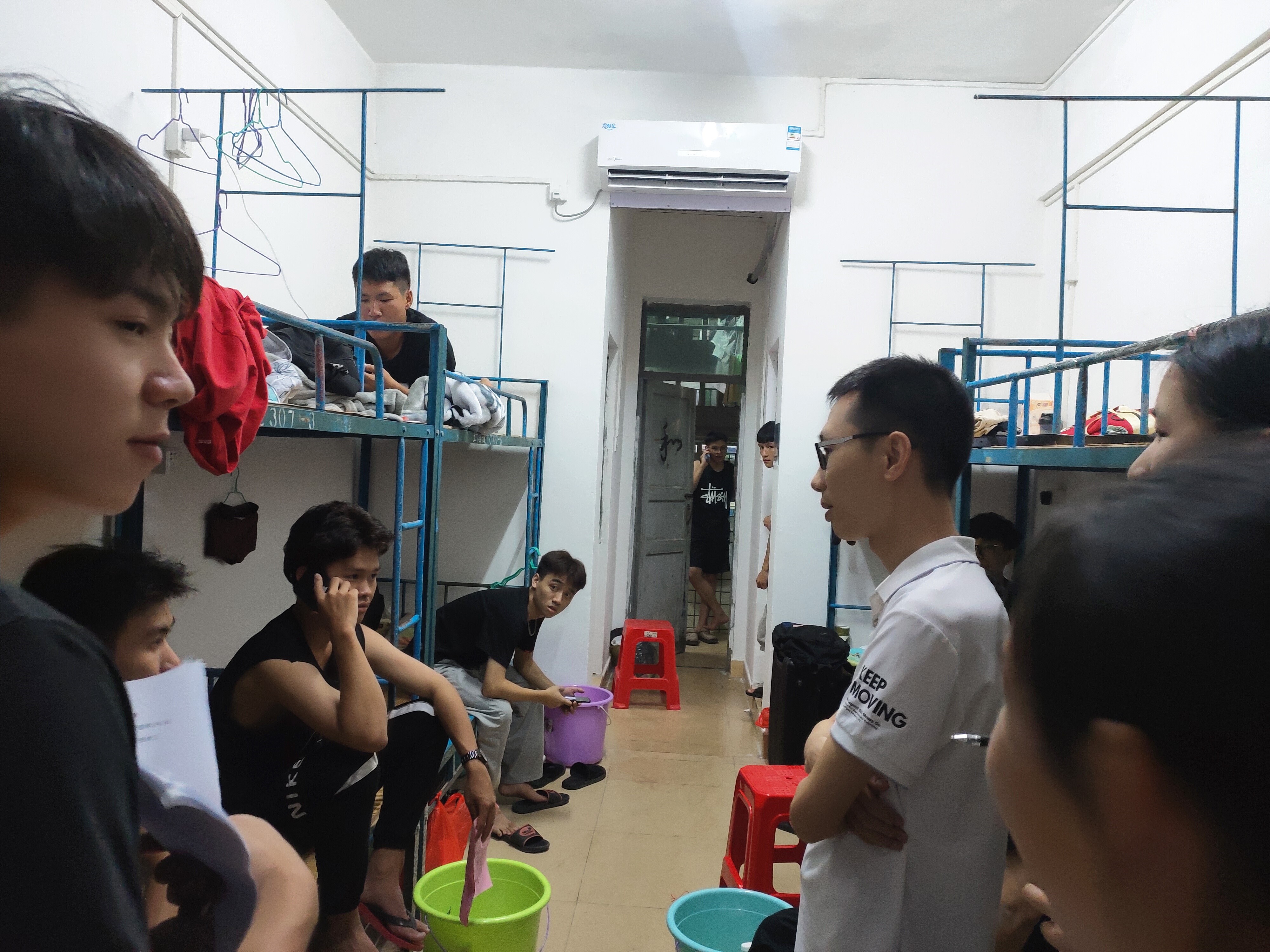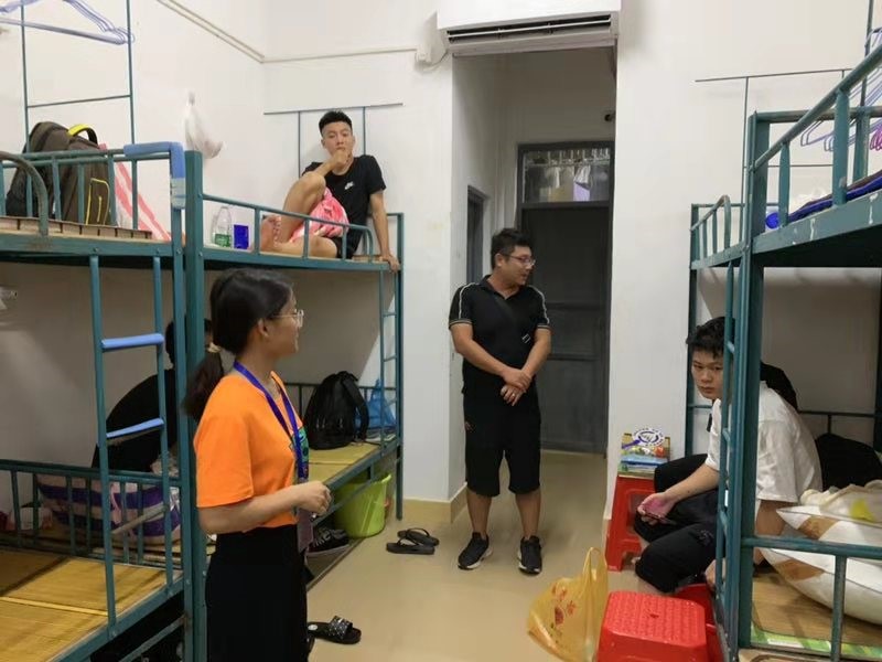 老师与同学们亲切交流,嘘寒问暖,详细询问每一个员工的家乡在哪里,关心他们进入老员工活前的情况,期望同学们在公司能感受到“家”的温暖。老师们还详细了解了新生入学第一天的生活情况,检查员工宿舍环境,询问宿舍水电等设施是否正常,生活是否方便。