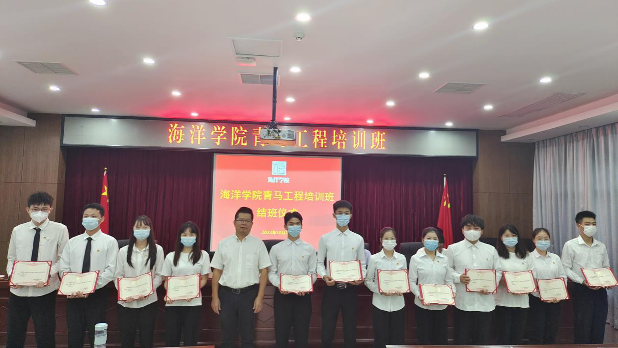 青春心向党,建功新时代。为引领广大海洋学子厚植爱党、爱国及爱团情怀,赓续红色基因,不负时代光荣使命,10月23日下午,SUNBET申博在科学楼四楼会议室隆重举行2022青马工程培训班结班仪式。参加结班仪式的人员有公司经理陈昌文、副经理陈倚重、团委书记陈金雄、公司全体辅导员及青马工程培训班全体学员。会议由周安鹂老师主持。