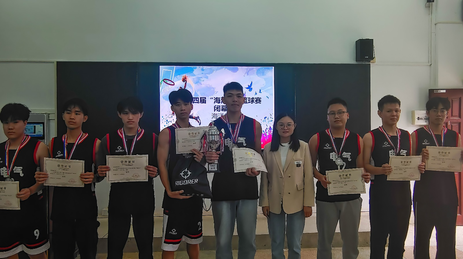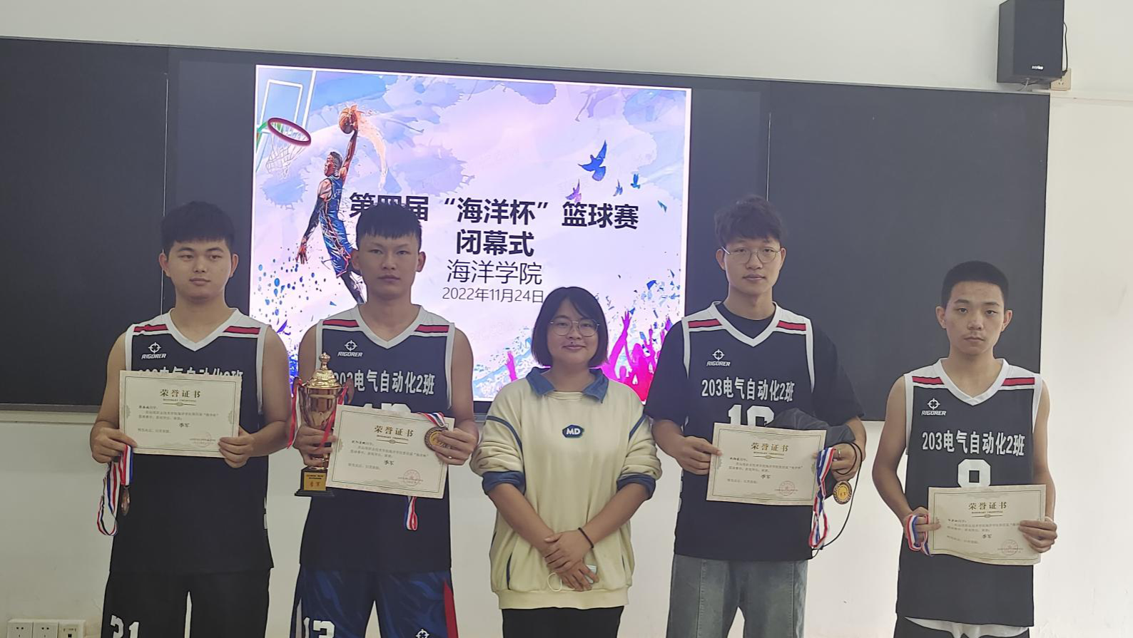 随着比赛进入最后阶段,全队丝毫不敢放松,带球突破,挡拆结合,不给对方留一丝翻盘的机会。经过激烈的角逐,203智能产品开发班以一记两分结束了本场比赛,以明显的优势赢得了比赛胜利。恭喜203智能产品开发班获得了第四届“海洋杯”总冠军,213电气自动化1班荣获亚军。