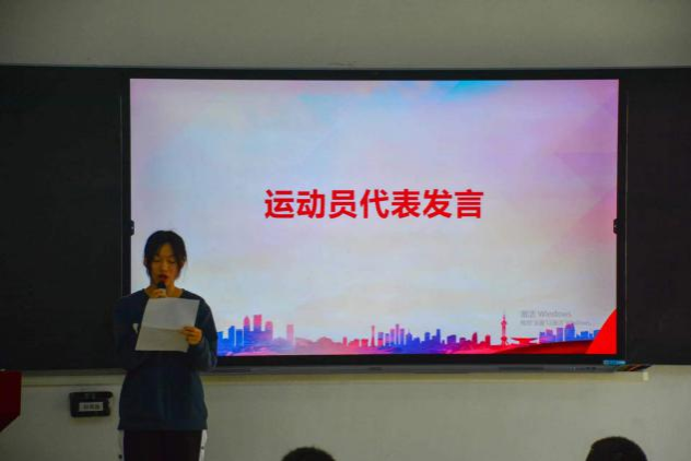优秀运动员代表黄婉婷同学感谢公司给同学们提供了展示自我的平台,也感谢在此次比赛中辛苦付出的员工工作人员以及给予运动员强大力量的观众。她通过讲述自己在各个项目中训练的日常,传达了坚持和努力的重要性。另外,她鼓励师弟师妹们秉承初心,勇往直前,在明年的赛场上继续为SUNBET申博争光。