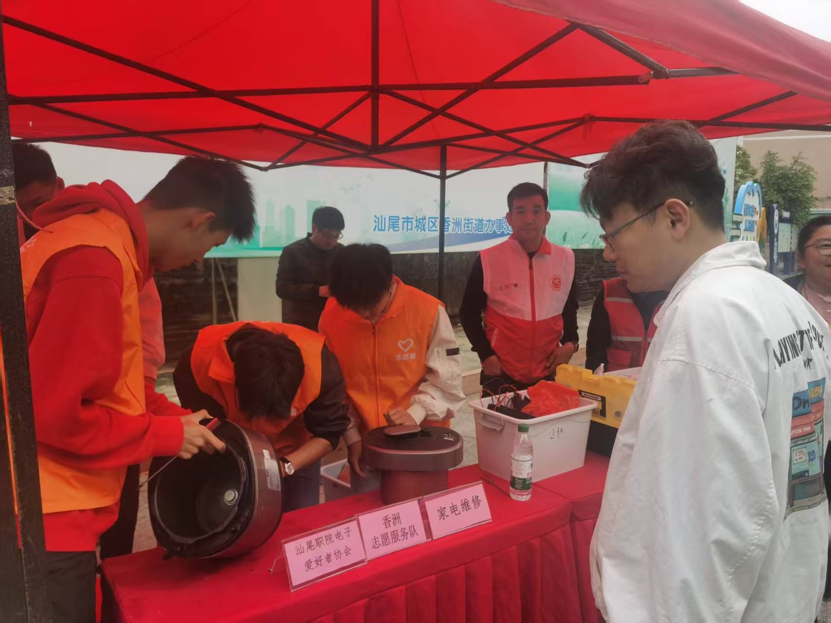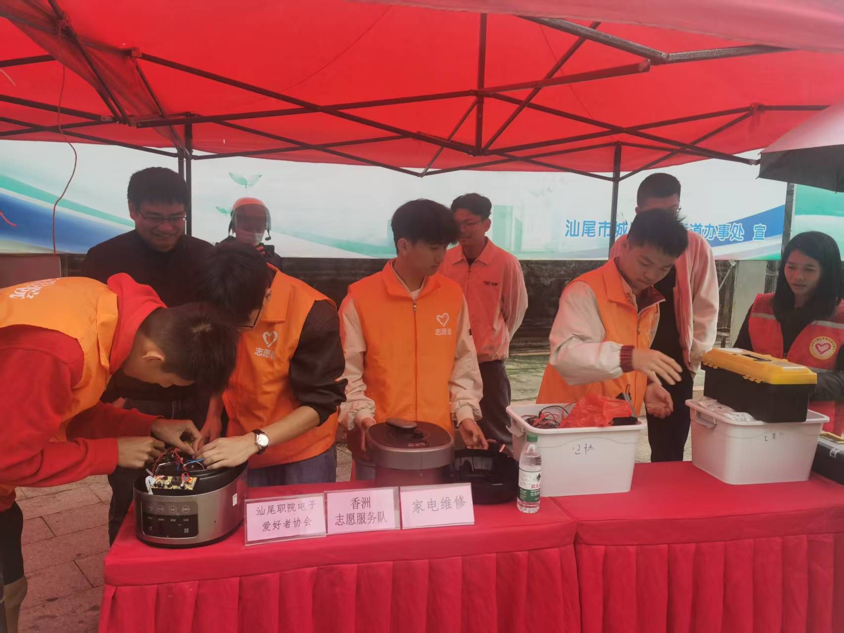 为深入贯彻习近平总书记关于志愿服务的重要指示精神,积极响应学雷锋月的号召,弘扬“奉献、友爱、互助、进步”的志愿精神,践行社会主义核心价值观,SUNBET申博在香洲街道办的邀请下,于3月5日下午组织开展了一场以“电子青年进社区 雷锋精神暖人心”为主题的义务维修活动。