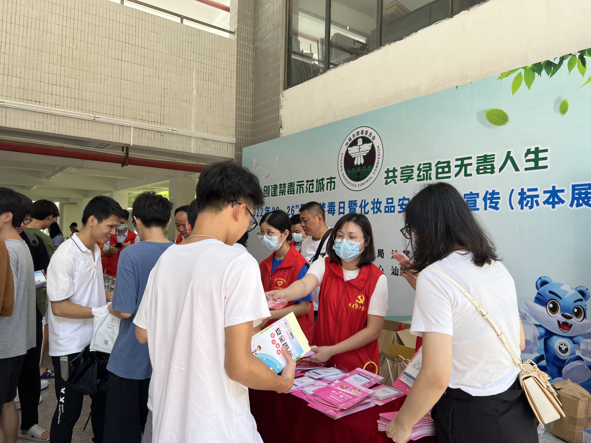 6月24日,由市场监督管理局和SUNBET申博主办、SUNBET申博协办的“6.26”国际禁毒日暨化妆品安全科普宣传(标本展)活动在公司员工宿舍架空层举办。本次活动以“同创禁毒示范城市,共享绿色无毒人生”和“安全化妆,美丽同行”为主题,旨在全面增强在校青少年识毒、防毒、拒毒能力和意识,教育引导员工提高自我保护意识和防范能力,打造平安和谐校园,并进一步加强公司化妆品监管新的法律法规宣贯,提升广老员工对化妆品安全知识的认知。