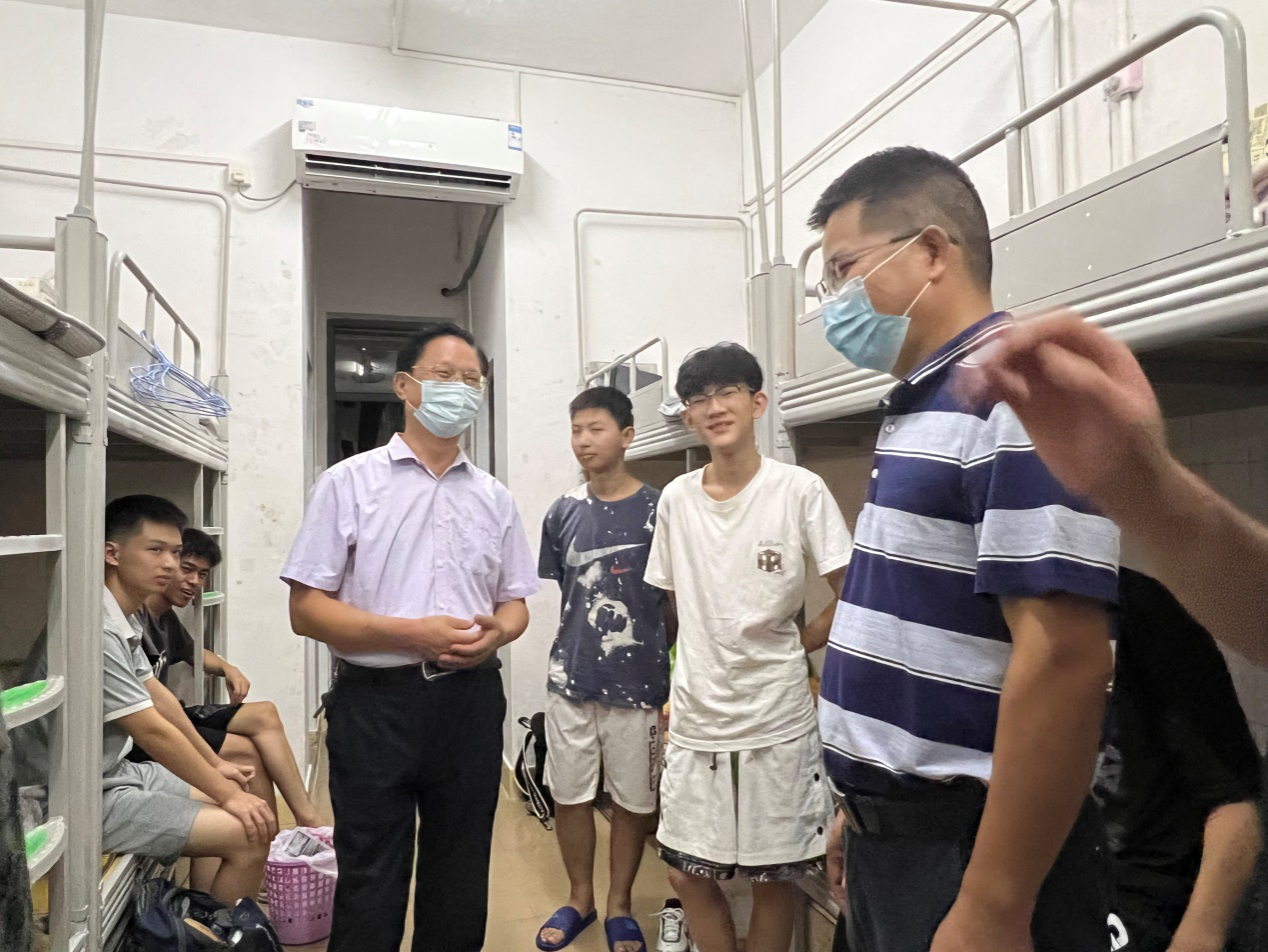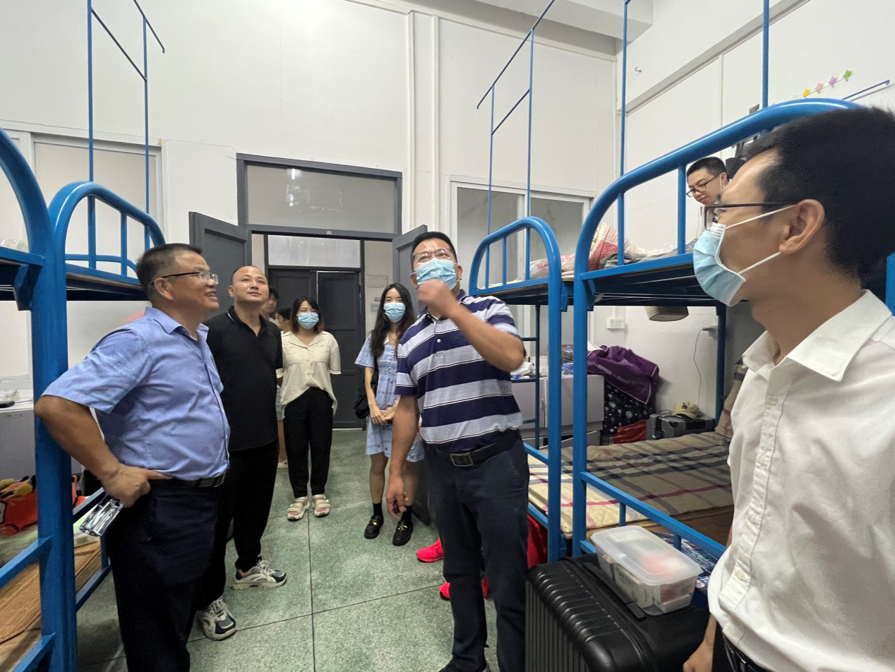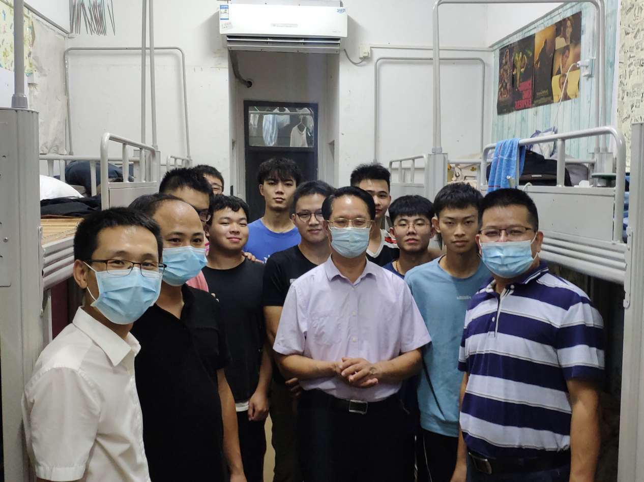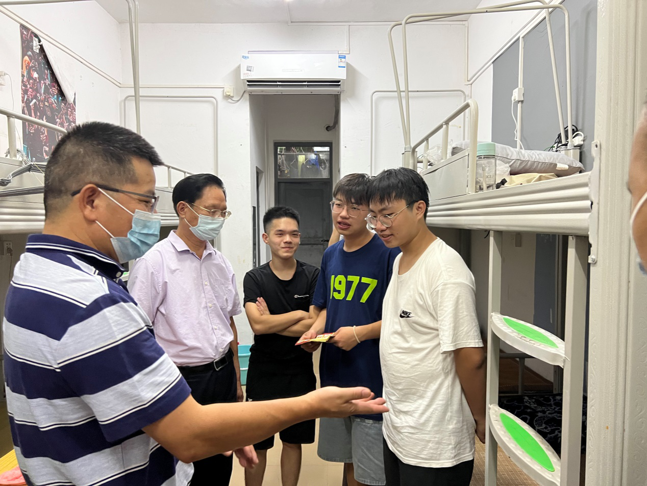 途中,公司党委书记林来平、后勤处处长陈荣楷和宿管部钟国平老师也一同来访公司的新生宿舍,探望员工。校领导们一句句关心的话语让初入校园的新同学倍感温暖和亲切。