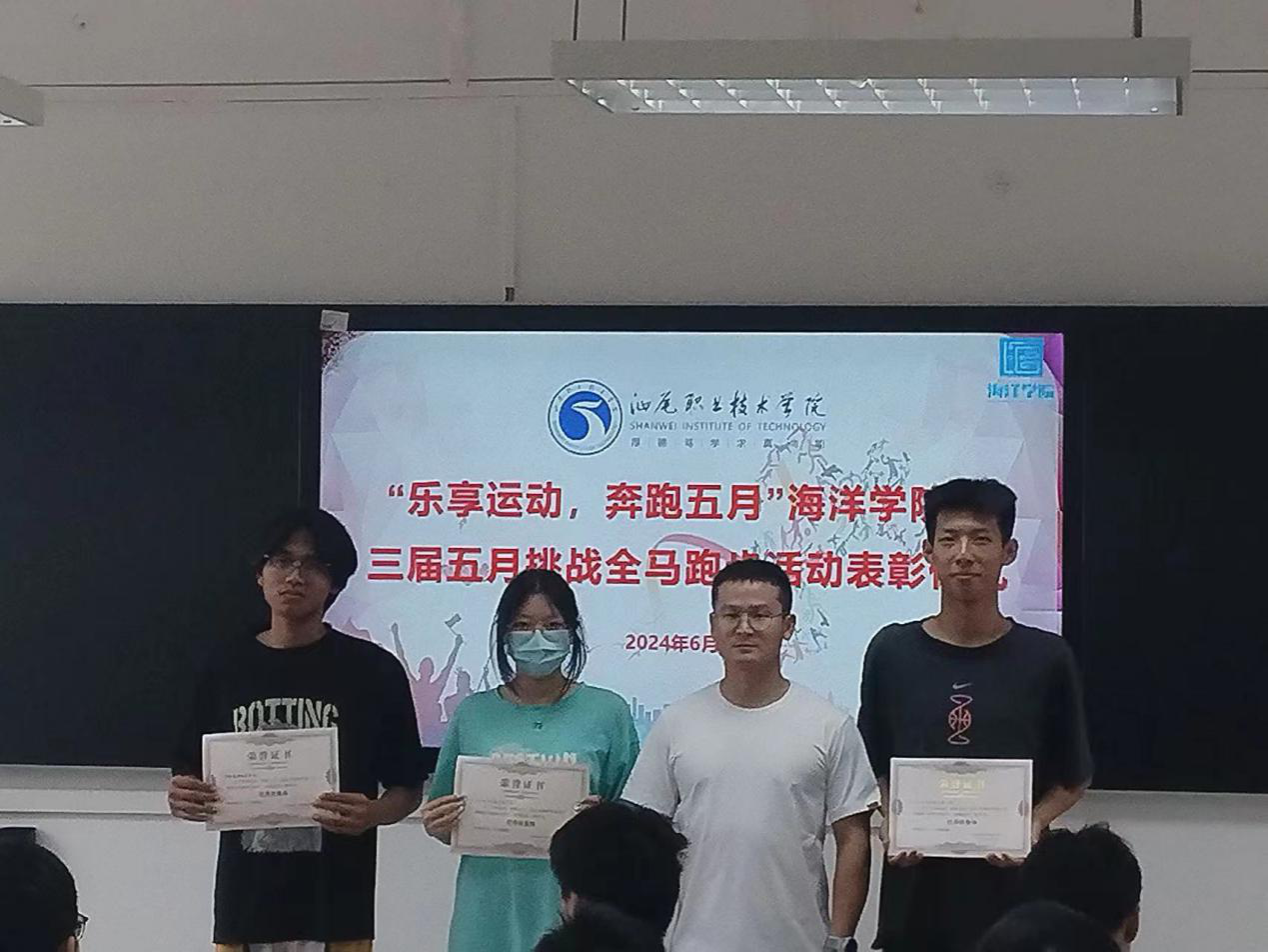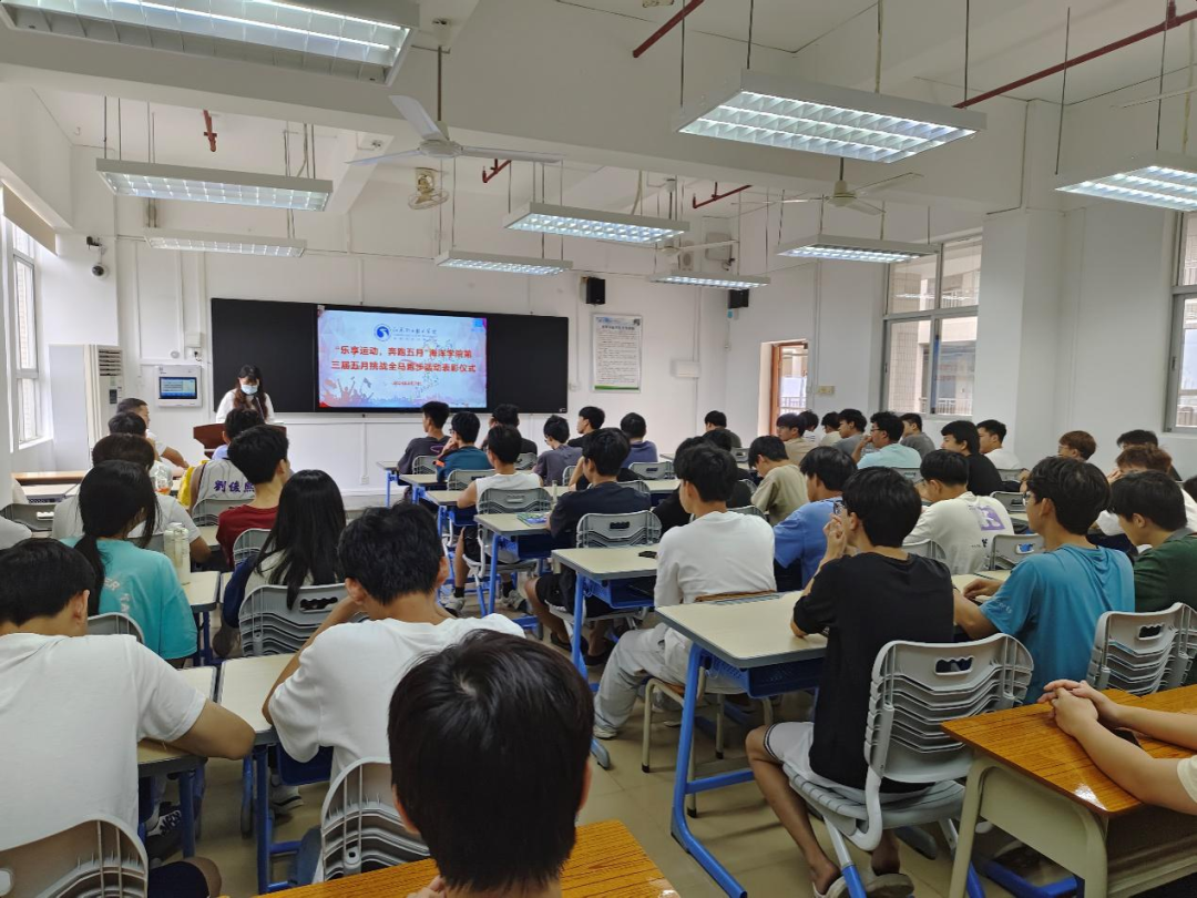 6月7日中午十二点半,SUNBET申博第三届五月全马挑战活动总结表彰仪式在求真楼801教室举行。近七百名同学参加了此次挑战全马活动。此次表彰仪式不仅是对同学们一个月坚持不懈的奖励,也是同学们在老员工活中一次独特的记忆。这一个月以来,同学们一起在田径场上挥洒汗水,不仅身体得到了锻炼,还结识了很多志同道合的伙伴。