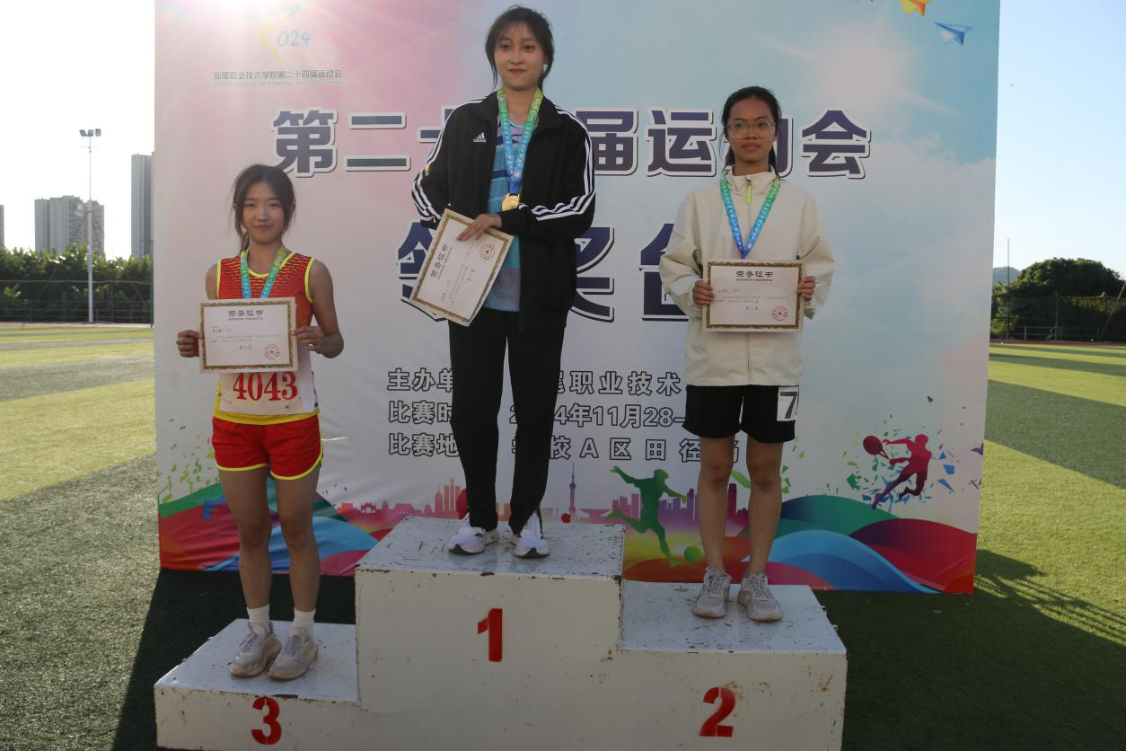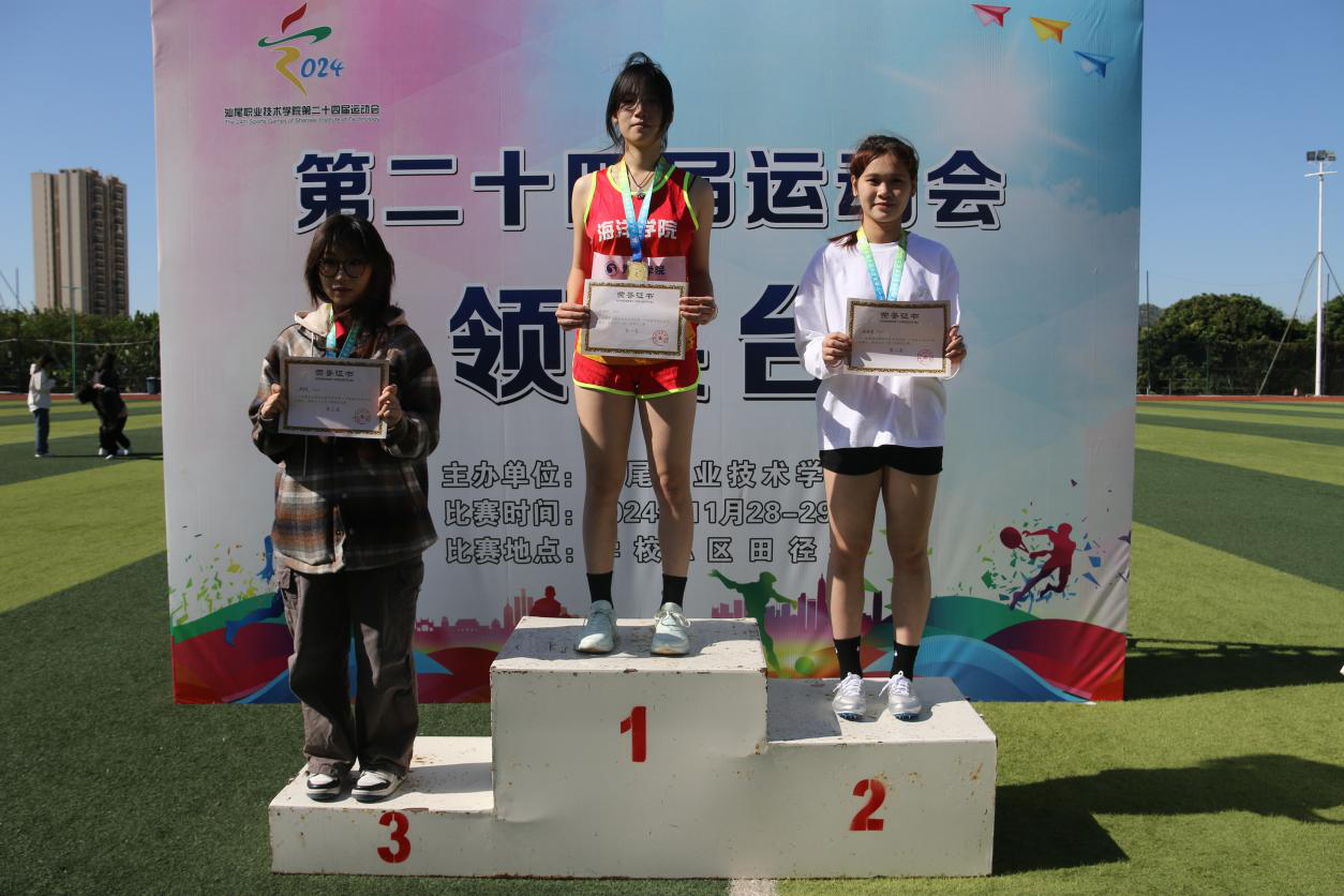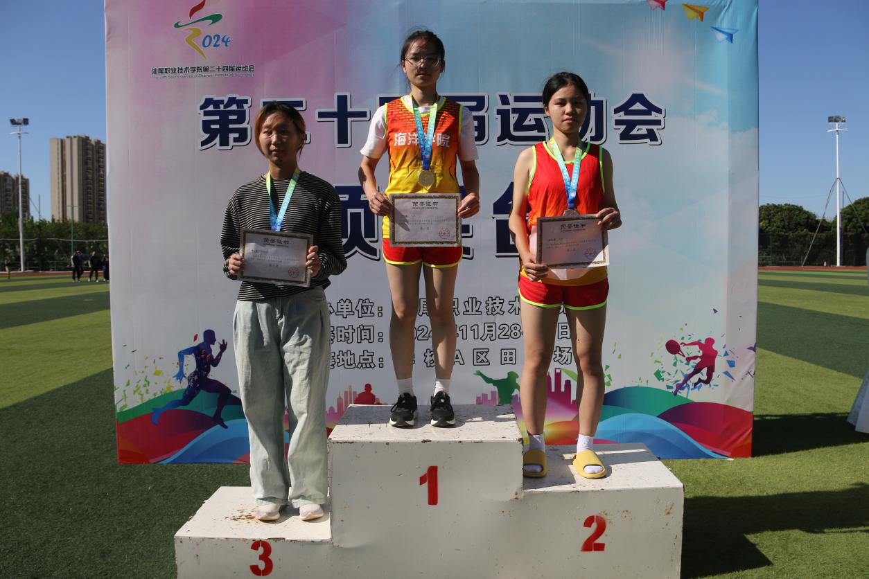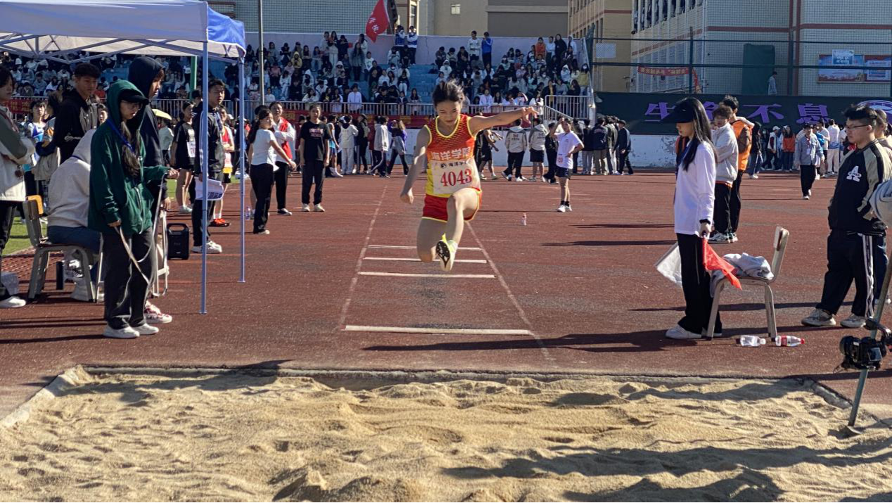 恭喜黄湘怡同学在女子三级跳远决赛中获得冠军