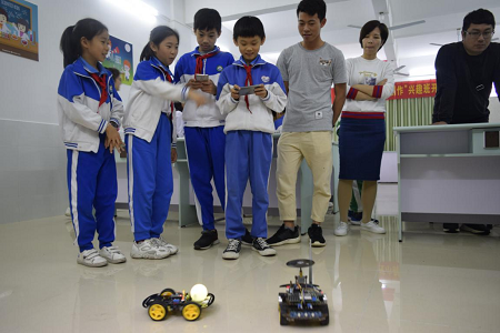 然后,科技团队还教他们操作科技产品,让他们感受到科技的乐趣。寓教于乐,让同学们以后对科技有着更大的兴趣,更好地学习。