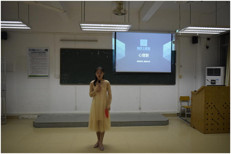 为提高同学们的心理认识水平,丰富同学们的课余文化生活,我系于4月26日晚在实训楼803举办了以“健康成长,拥抱未来”为主题心理剧比赛。各辅导员老师作为评委出席了本次比赛。