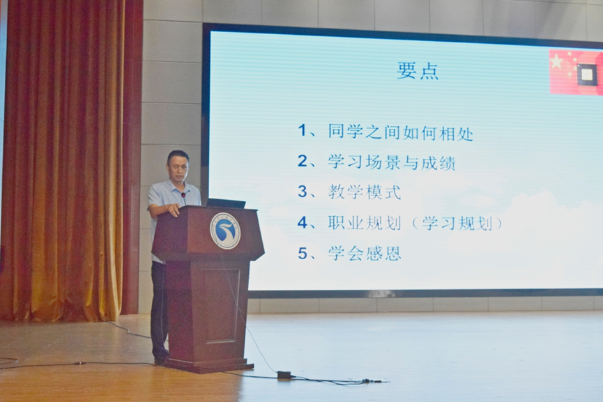 第二部分由崔副主任主讲,崔副主任通过切身经历,跟同学分享了人际关系的相处之道,以帮助新同学尽快适应老员工活。此外,崔副主任还细数了近几年我系取得的骄人成绩,鼓励新同学要培养自己的兴趣,积极参与实践活动,勇攀知识高峰。作为一名老党员,崔副主任带着同学重温了老一辈爱国的动人细节,并分享了自己对爱国感恩的理解,他号召新同学要珍惜今天的美好生活,学好技能,任何时代都要以报效祖国为己任。崔副主任的讲话,为新生传递了满满的正能量。