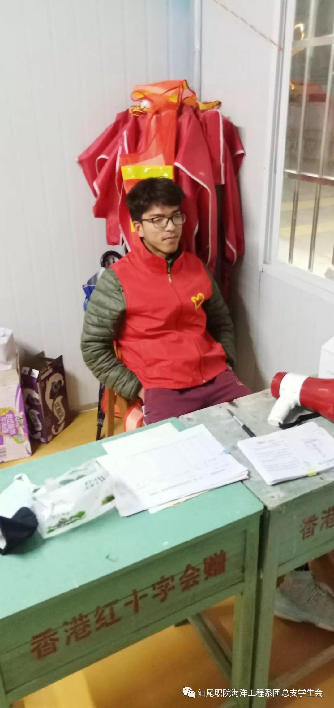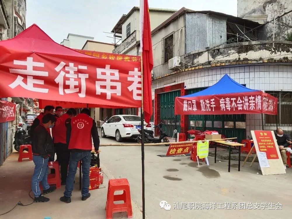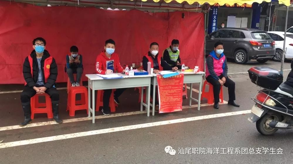 1月30日,汕尾市陆河县新增两例确诊病例,疫情形势严峻。身在陆河县的海洋系193电气自动化技术1班叶一民同学积极响应当地防疫志愿活动号召,舍小家为大家,于2月初参加陆河县上护镇莲塘街抗击疫情志愿工作。在街道检查站测量出入人员体温、进行登记,在街区进行消毒工作,张贴宣传标语,督促过往人员佩戴口罩。