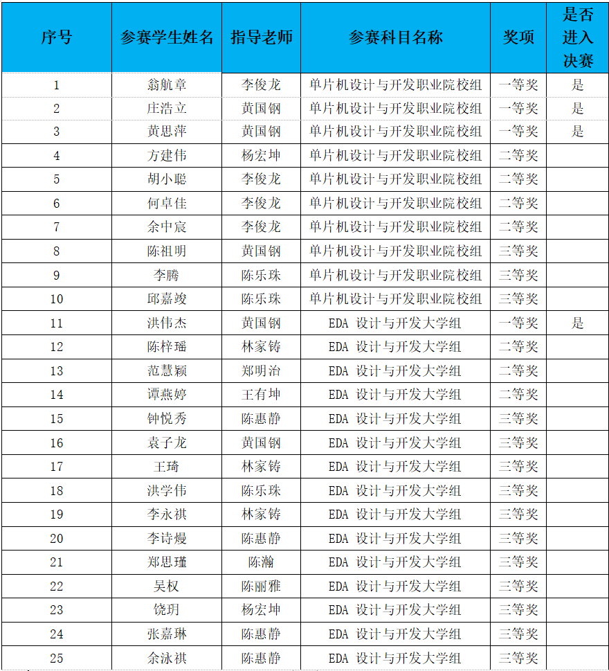 近日第十六届“蓝桥杯”全国软件和信息技术专业人才大赛广东省赛区(电子类)获奖名单正式揭晓。公司青年学子在竞赛中获得25个奖项,其中一等奖4个、二等奖7个、三等奖14个,获得省级一等奖的4位选手将晋级全国总决赛。